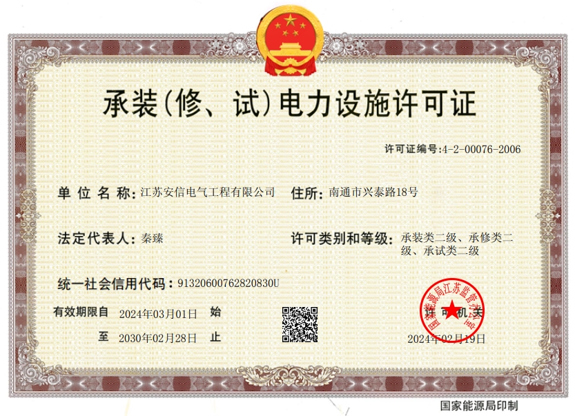 在創(chuàng)業(yè)之初,公司就堅(jiān)持高起點(diǎn)的戰(zhàn)略思路,廣納賢才,集聚行業(yè)精英,創(chuàng)新發(fā)展,做優(yōu)企業(yè)品牌。現(xiàn)已取得:承裝二級(jí)、承修二級(jí)、承試二級(jí),電力工程施工總承包二級(jí),輸變電工程專(zhuān)業(yè)承包二級(jí),建筑工程施工總承包二級(jí),建筑機(jī)電安裝專(zhuān)業(yè)承包二級(jí),地基基礎(chǔ)專(zhuān)業(yè)承包二級(jí)資質(zhì)證書(shū),并通過(guò)了質(zhì)量、環(huán)境、職業(yè)健康和安全管理體系認(rèn)證,確保各項(xiàng)工作有序管控。